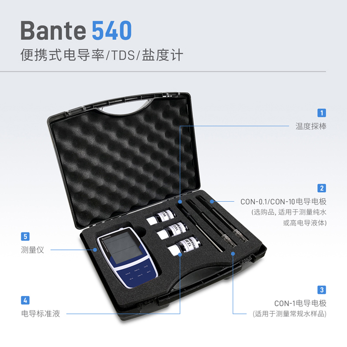 Bante540便攜式電導率/TDS/鹽度/電阻率計